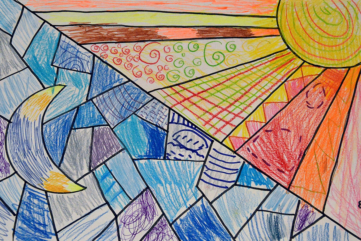 4. Šaltos ir šiltos spalvos. Kadangi orai atšalo per naktį... buvo gera proga pakalbėti apie šaltį ir šilumą. Na žinote: šilumos dar nepamiršom, o ir šaltis jau toks žiemiškas. Ta proga pakalbėjom ir apie tai, kad ir spalvos turi savo temperatūrą: būna šiltos ir šaltos. Nuspalvinom labai smagų darbelį: diena - naktis, šiltos - šaltos spalvos. Smagus ir paprastas. Ir dar kokia terapija mamai... (nuo dailės nesimuilinu - taip nuostabu kartu su vaikais vėl pabūti vaiku).